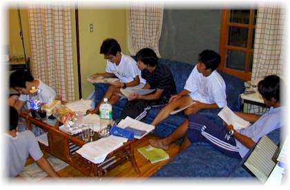 ゼミも長時間になってくると、結構疲れるよね。 でもみんな真剣だね。 |