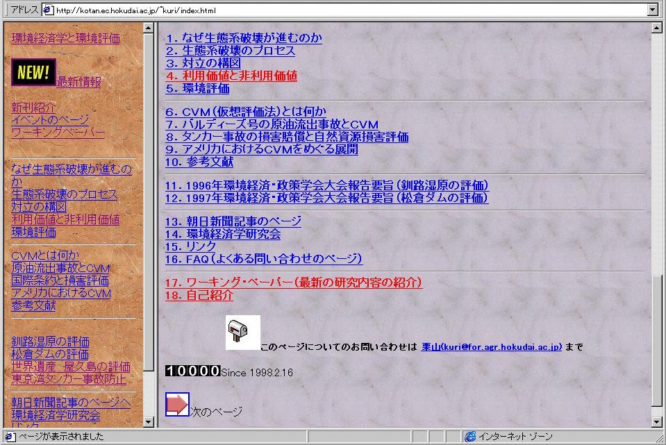 [HOME][最新情報][環境経済学とは][研究のページ][授業のページ][リンク][プロフィール]