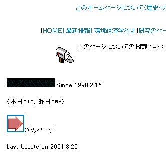 リンクのページ問い合わせと答え(FAQ)のページの拡充希望が多くきていますが、しばらくお待ちください。リンクについては、ちょっと古くなっていますが、環境経済学関係のInternet利用方法のページをご参照ください。またFAQについては環境評価の技術的な質問を環境評価フォーラムのメーリングリストで受け付けていますので、ご利用ください。