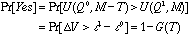 とする。ただし、Mは所得である。環境保全政策を実施するためにT円の負担を回答者に提示したとき、回答者が賛成と答える確率は