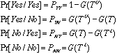 、Gは分布関数である。ここで、Gがロジスティック分布に従うと仮定すると、ロジットモデルとなる。ダブルバウンドの場合は、最初に提示額Tを示し、賛成と答えた人には高い金額TUを示し、反対と答えた人には低い金額TLを示す。それぞれの回答が得られる確率は、以下の通りとなる。