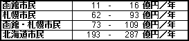 以上の結果をもとに、松倉ダムが建設されたときの生態系破壊の損害額を評価する。CVMは、推定された支払意志額に対象世帯数をかけることで、集計額を算出する。対象世帯の範囲は、松倉ダム建設による生態系破壊の影響が及ぶ範囲であるが、ここでは、函館市民、札幌市民、および北海道市民の3つを対象として評価した。
