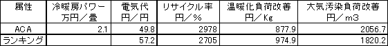 ACAデータについては順序プロビットおよびトービットの結合推定が行われ、ランキングデータについてはランク順序ロジットによる推定が行われた。いずれもすべての変数が1%水準で有意であった。表2は推定された限界支払意志額を示している。ACAとランキングの結果は接近しており、温暖化負荷改善は1kgあたり900円前後、大気汚染負荷改善は1m3あたり2000円前後であった。この結果をもとに温暖化負荷の低い商品が販売されたときの市場占有率をシミュレートしたところ、温暖化負荷の低い商品の価格が24万円以下であれば価格20万円の標準的商品よりも高いシェアが得られることが判明した。